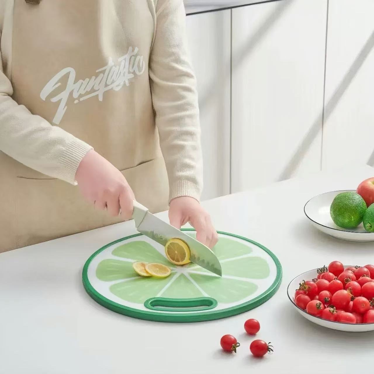 Round Green Lemon-Shaped Cutting Board