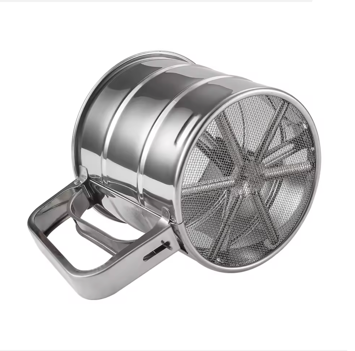 Easily sift flour and powdered sugar with this high-quality stainless steel flour sifter. Durable and large-sized, perfect for baking cakes, pastries, and more. Easy to use and clean, a must-have kitchen tool.