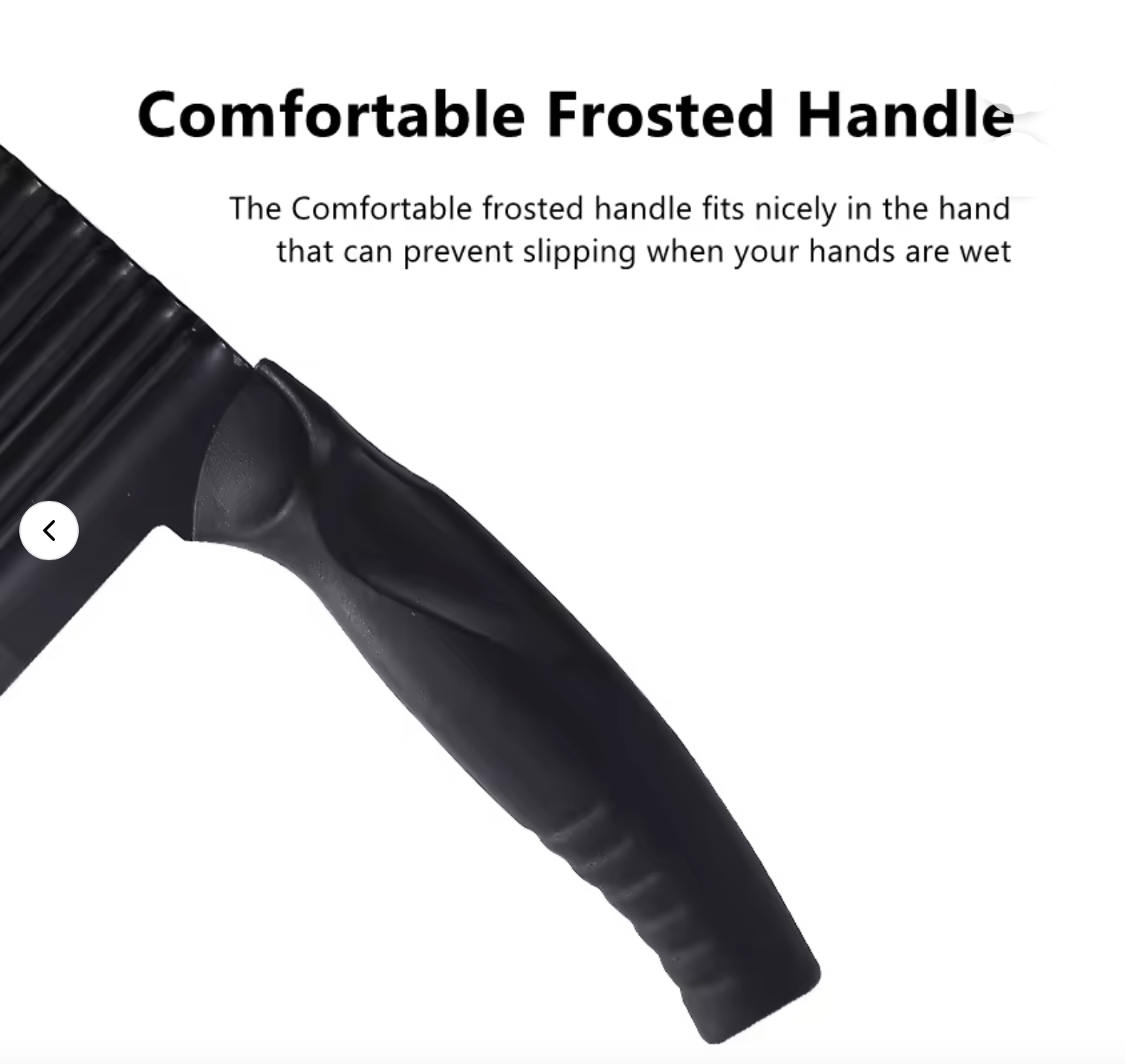 Easily create crinkle-cut vegetables and French fries with this high-quality stainless steel wavy knife. Perfect for potatoes, carrots, and other veggies, durable, safe, and easy to use—a must-have kitchen tool.