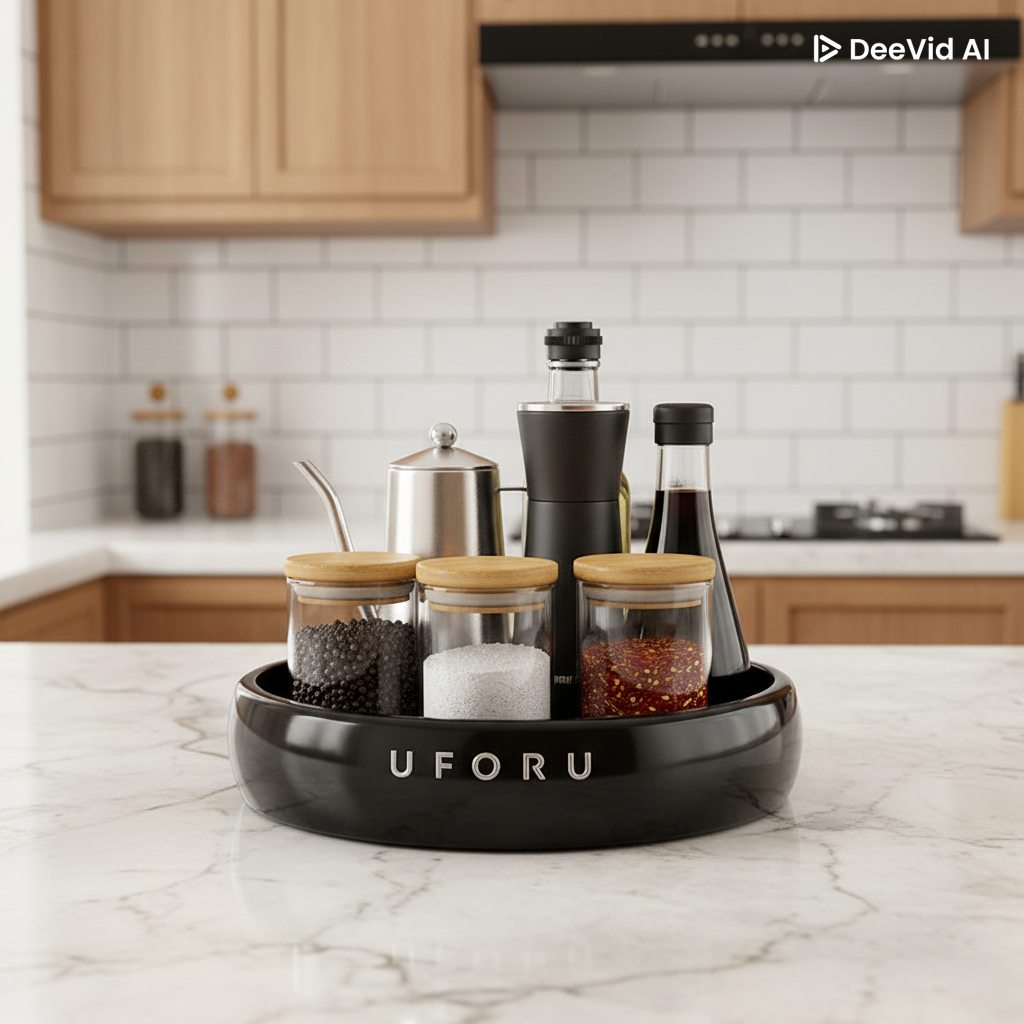 Keep your kitchen neat and stylish with the UFORU Large Rotating Tray. Designed with a smooth 360° spin, it makes accessing spices, condiments, and essentials effortless. Made from durable, easy-to-clean plastic, it’s perfect for organizing your pantry, fridge, or countertop. Available in Black to match any kitchen style.