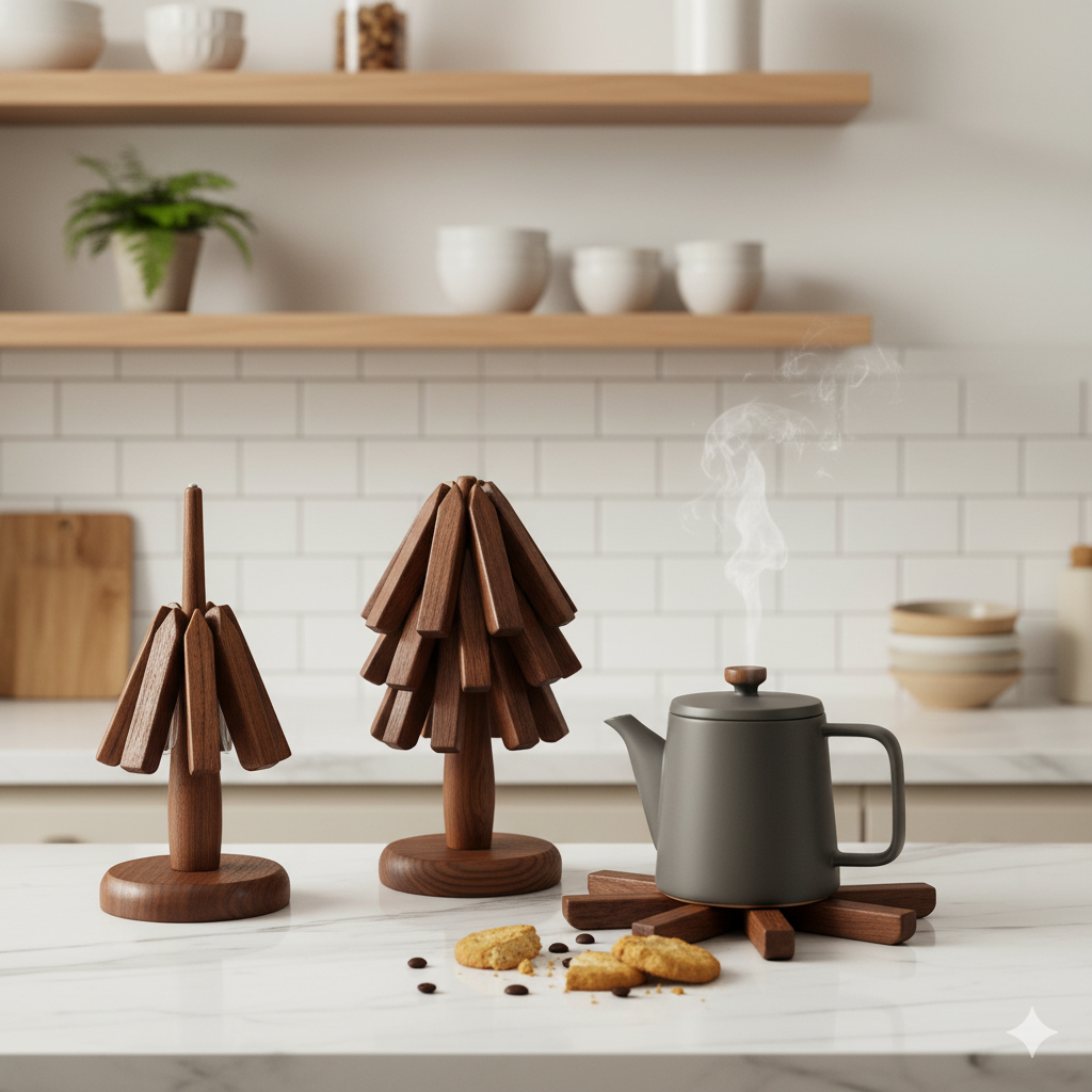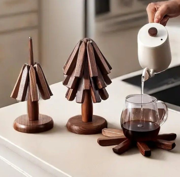 Elevate your dining table with this wooden tree-shaped trivet set, designed to protect surfaces from hot dishes, teapots, and cookware. Made from durable, eco-friendly wood, these heat-resistant trivets combine functionality with rustic charm, making them perfect for everyday meals or festive gatherings.
